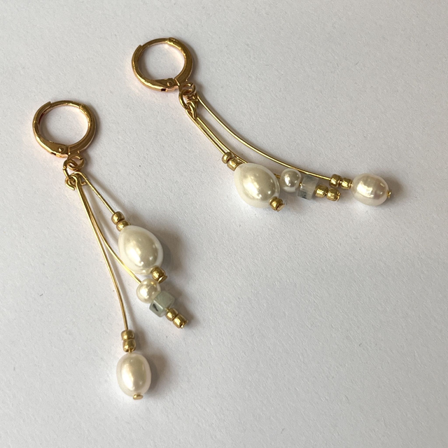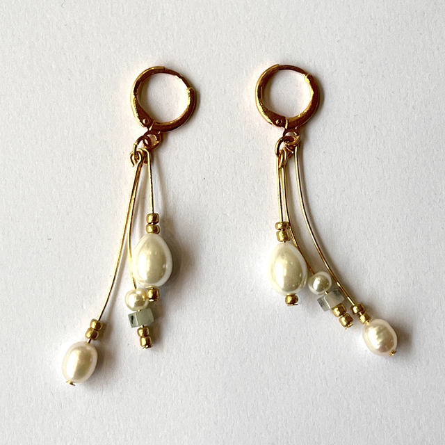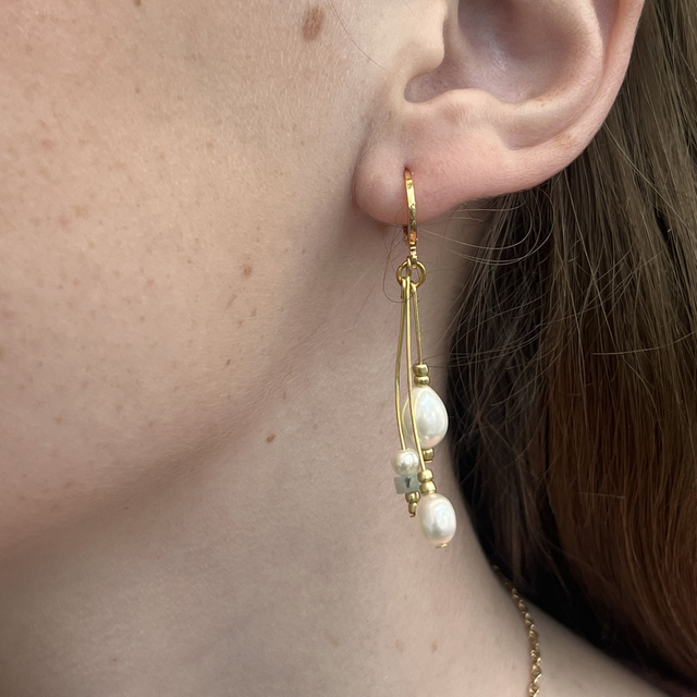 Boucles d’oreilles pendantes composée de 3 tiges et perles de .