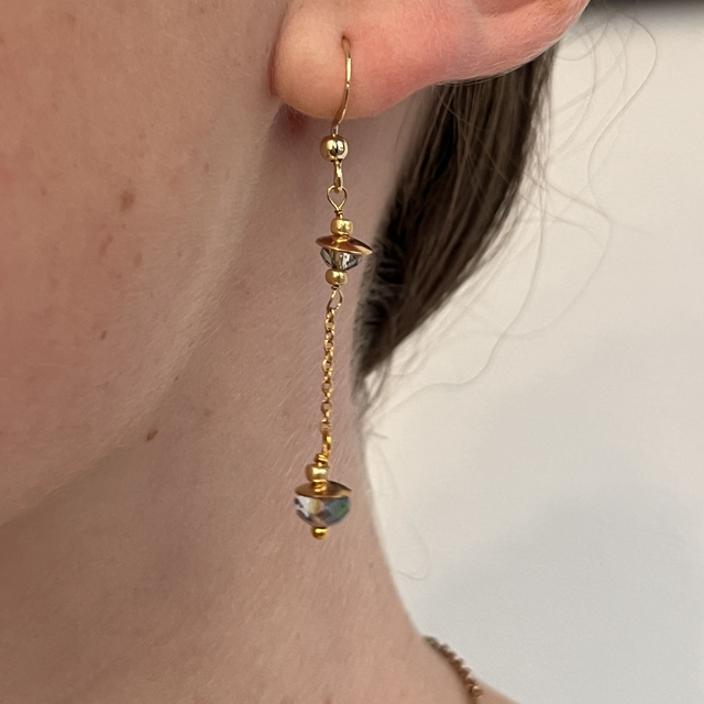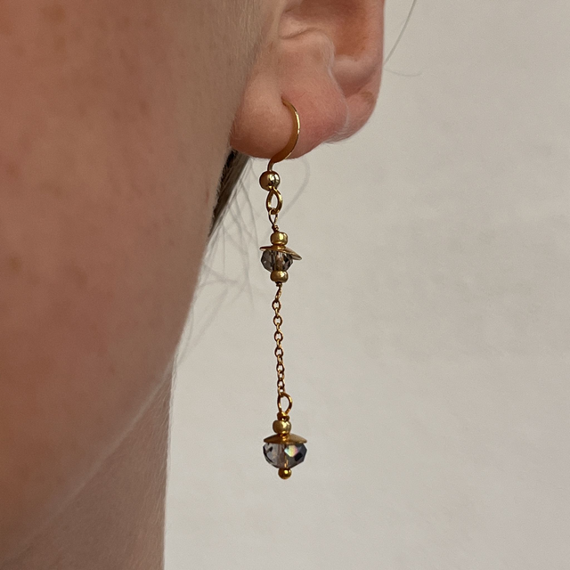 - Matériaux : Perle de cristal, chainette en acier inoxydable et monture 14K