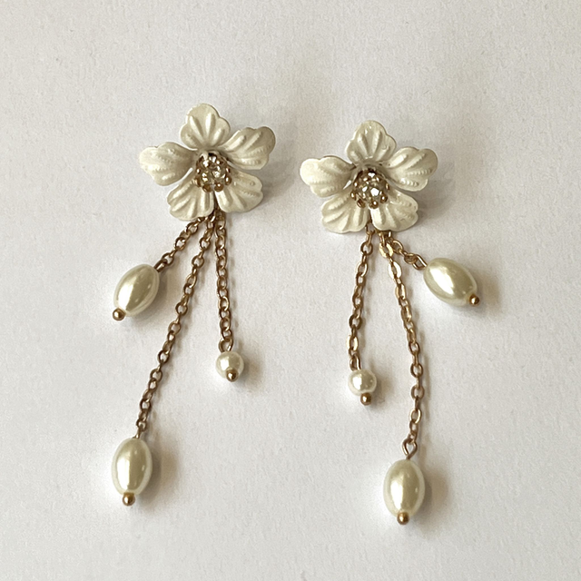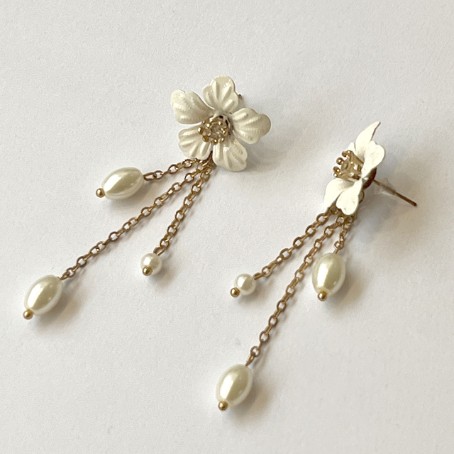 • Matériaux : Fleur peinte à la main, cœur en strass, chaînettes en acier inoxydable et perles de nacre.