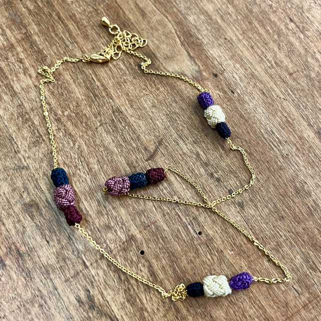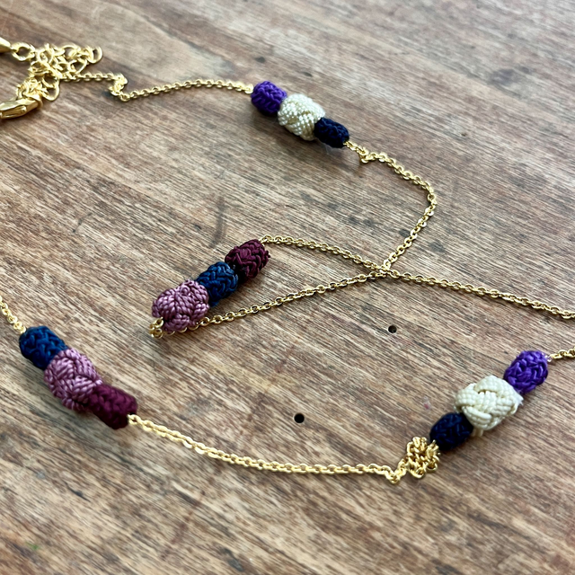 • Matériaux : Chaîne en acier inoxydable, perles tissées main en soie végétale.