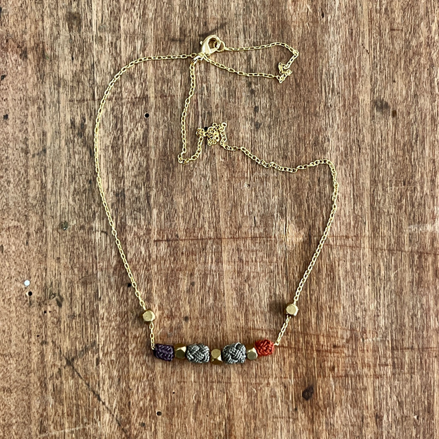 - Matériaux : Chaîne en acier inoxydable, perles tissées main en soie végétale.