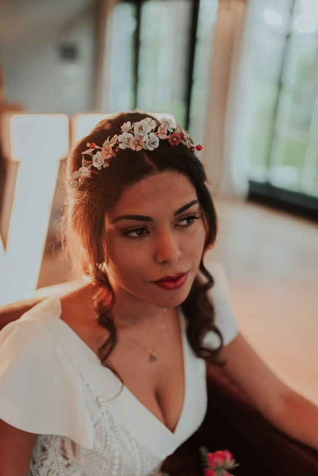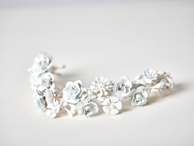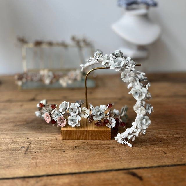 Montée sur une base métallique flexible, elle s’adapte harmonieusement à toutes les courbes de votre coiffure, garantissant un maintien parfait tout au long de votre journée spéciale. De plus, nous offrons la possibilité de commander cette tiare dans une gamme de couleurs sur mesure, vous permettant de créer un accessoire qui reflète parfaitement votre style personnel.