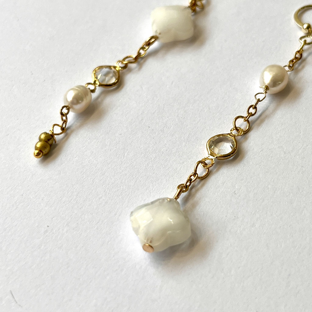 - Matériaux : Perle de nacre, chaînette en acier inoxydable et monture 14K